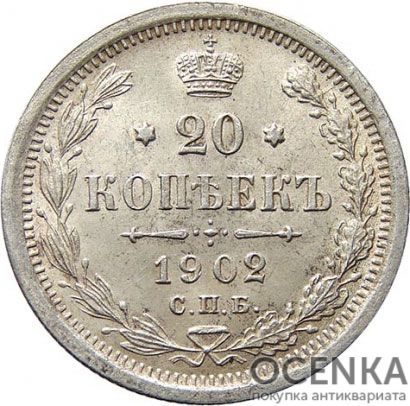 Бажаєте вигідно продати 20 копійок 1902 року Микола 2 ? Скористайтеся послугами нашого сайту, середня ціна товару по Україні від 50 грн. дo 500 грн. Ми спеціалізуємось на оцінці антикварних, старовинних, пам'ятних, раритетних предметів, знаємо точну ціну таким скарбам.