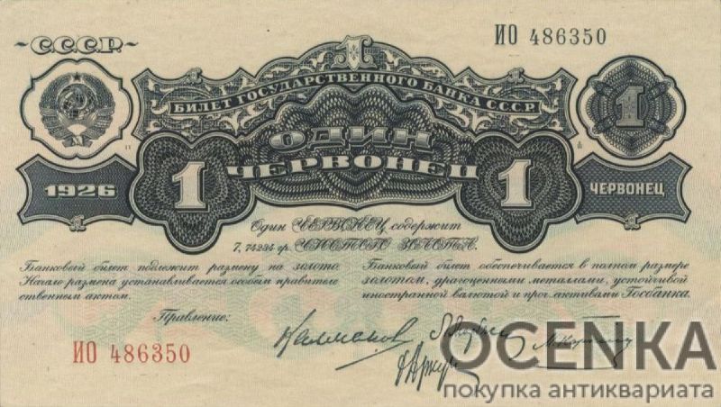 Оцінка антикваріату – справа для професіоналів, особливо якщо справа стосується Квитки Державного Банку СРСР 1926-1932 року. Це важливий історичний артефакт, яких залишилося не так багато, тож і ціни на нього варіюються від 60 грн. дo 1500 грн. Такі антикварні речі часів СРСР важливо зберегти, адже вони розповідають про минуле та дають нам цінні уроки на майбутнє. Компанія «Оцінка» здійснює скупку Банкнота 1 червонець 1926 року на дуже вигідних та зручних для клієнтів умовах.