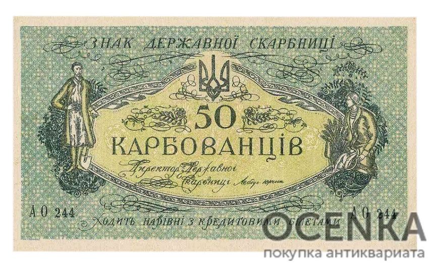 Бажаєте вигідно продати Банкнота 50 карбованців 1918 року ? Скористайтеся послугами нашого сайту, середня ціна товару по Україні від 10 грн. дo 180 грн. Ми спеціалізуємось на оцінці антикварних, старовинних, пам'ятних, раритетних предметів, знаємо точну ціну таким скарбам.