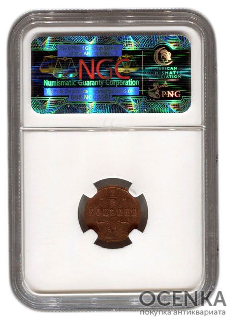 Оцінити безкоштовно Мідна монета 1/2 копійки Миколи 2 у слабі , з кодом товару 194903 можна онлайн через нашу форму зворотнього зв'язку.