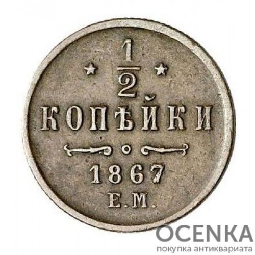 Бажаєте вигідно продати Мідна монета 1/2 копійки Олександра 2 ? Скористайтеся послугами нашого сайту, середня ціна товару по Україні від 70 грн. дo 38000 грн. Ми спеціалізуємось на оцінці антикварних, старовинних, пам'ятних, раритетних предметів, знаємо точну ціну таким скарбам.