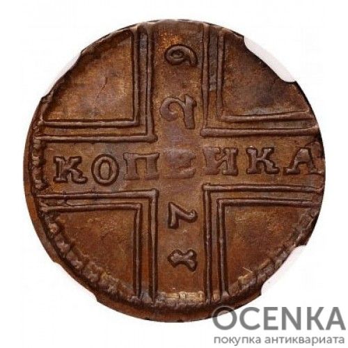 Бажаєте вигідно продати Мідна монета 1 копійка Петра 2 ? Скористайтеся послугами нашого сайту, середня ціна товару по Україні від 450 грн. дo 5000 грн. Ми спеціалізуємось на оцінці антикварних, старовинних, пам'ятних, раритетних предметів, знаємо точну ціну таким скарбам.