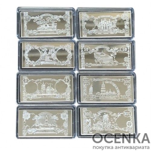 Бажаєте вигідно продати Набір срібних міні-банкнот від 1 до 200 гривень 2006 року. ? Скористайтеся послугами нашого сайту, середня ціна товару по Україні від 4000 грн. дo 6000 грн. Ми спеціалізуємось на оцінці антикварних, старовинних, пам'ятних, раритетних предметів, знаємо точну ціну таким скарбам.
