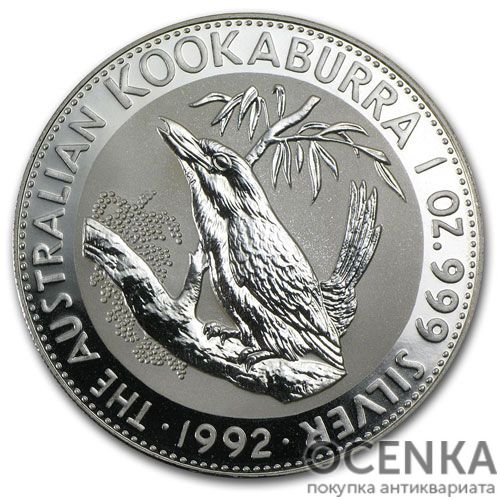 Срібна монета 1 долар 1992 рік. Австралія. Кукабарра