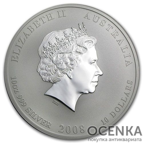Срібна монета 10 доларів 2008 року. Австралія. Лунар. Рік Щура
