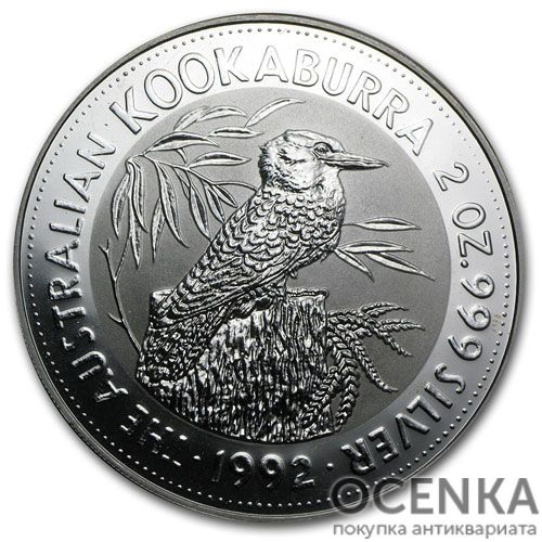 Срібна монета 2 долари 1992 рік. Австралія. Кукабарра