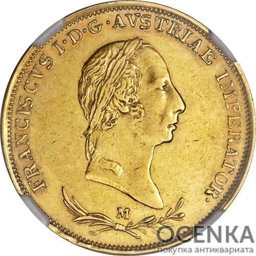 Як і деякі інші грошові знаки, золота монета гідністю 1 соврано була введена в 1822 на території Ломбардо-Венеціанського королівства, утвореного в 1815 і став однією з коронних земель Австрійської імперії. Його грошова система відповідала системі колишнього Міланського герцогства, куди Ломбардія входила до 1797 р., тому нова монета була названа відповідно до однойменного грошового знака. Аверс містив: