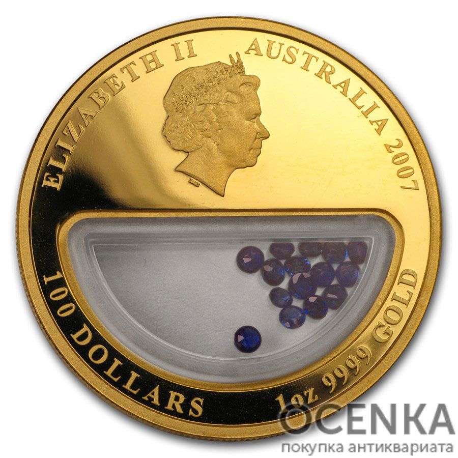 Золота монета 100 доларів 2007 року. Австралія. Скарби Австралії. Сапфіри