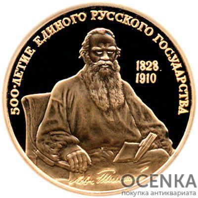 Золота монета 100 карбованців 1991 року. Лев Толстой