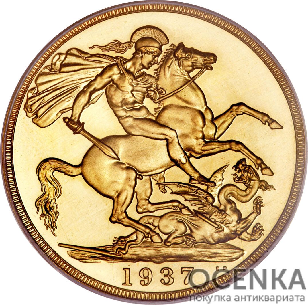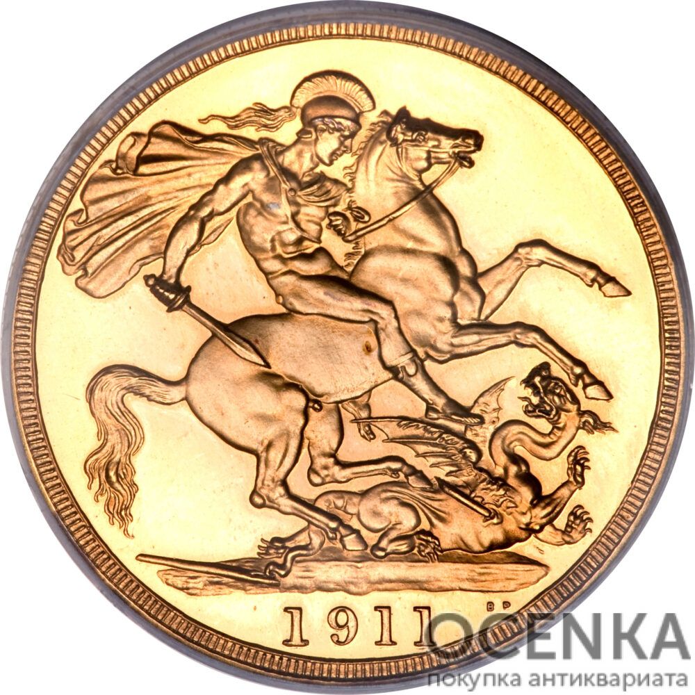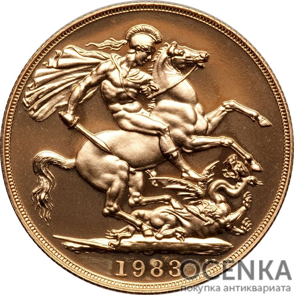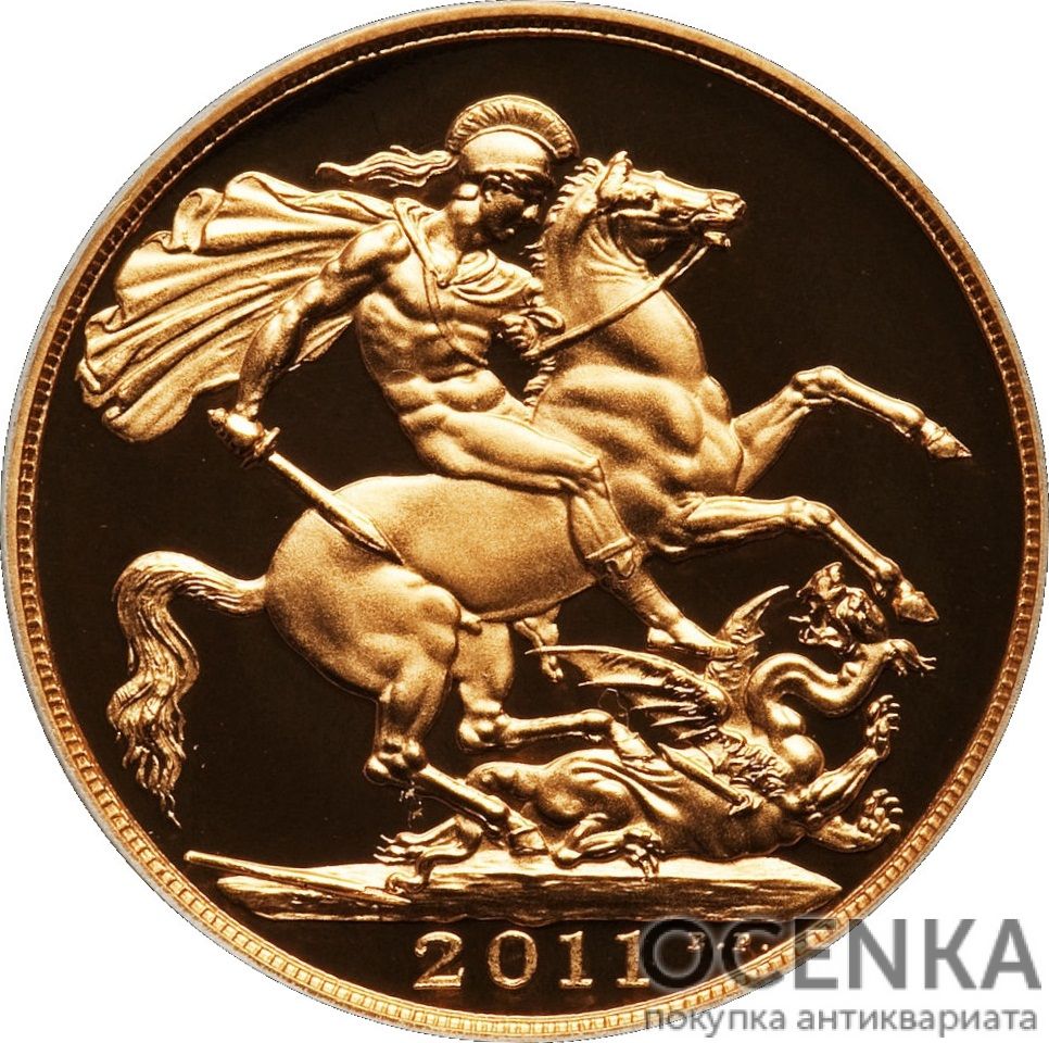 - Георг IV (1820 – 1830). На аверсі розташовується портрет короля та напис GEORGIUS IIII DG BRITANNIAR REX F D. Реверс зайнятий зображенням Георгія Побідоносця на коні. Він вражає змія списом. Матеріалом послужило золото 917 проби, вага монети становила 15,9 грама, діаметр – 28,4 мм;