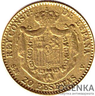 Золота монета 20 Песет (20 Pesetas) Іспанія