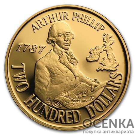 Бажаєте вигідно продати Золота монета 200 доларів 1987 року. Австралія. Артур Філіп ? Скористайтеся послугами нашого сайту, середня ціна товару по Україні від 20500 грн. дo 22500 грн. Ми спеціалізуємось на оцінці антикварних, старовинних, пам'ятних, раритетних предметів, знаємо точну ціну таким скарбам.