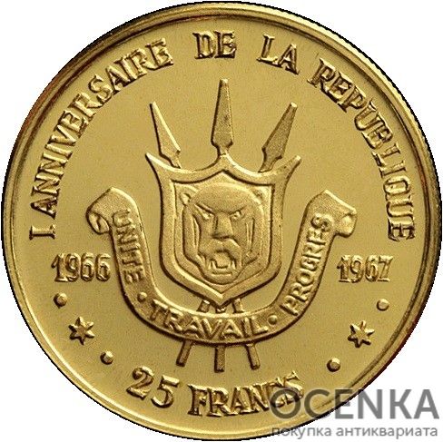 Золота монета 25 Франків (25 Francs) Бурунді