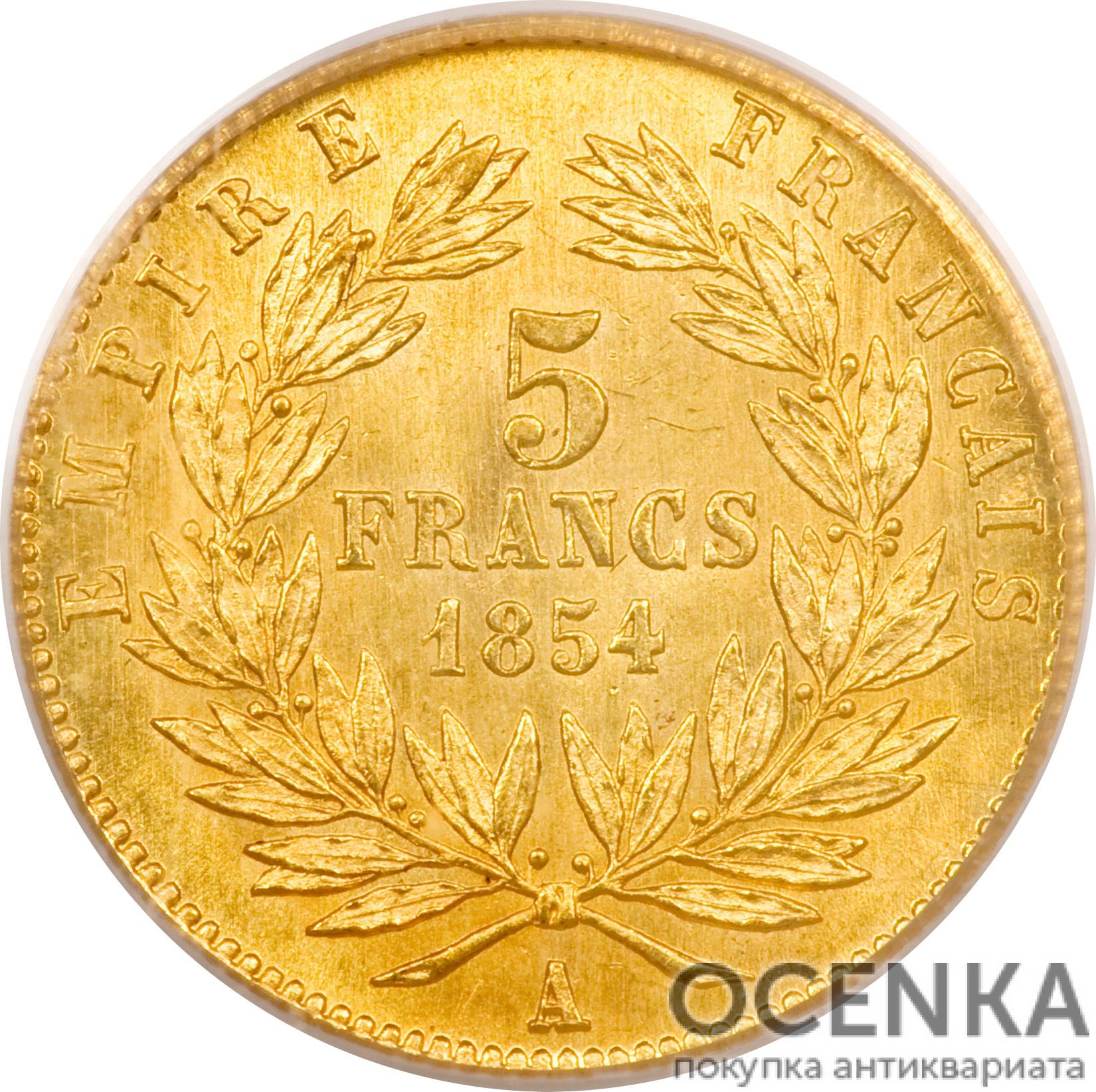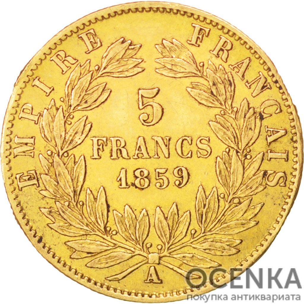 Вся історія карбування золотої монети номіналом 5 франків обмежується правлінням Наполеона III (1808-1873 рр., правил у 1848-1870 рр.), так що не буде великою помилкою назвати цей різновид його дітищем. Вперше вона була випущена 1854-го, через два роки після проголошення у Франції Другої імперії.