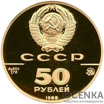 Золота монета 50 карбованців 1988 року. Софійський собор у Новгороді