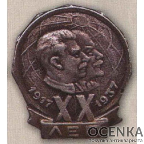 Значок (жетон) в честь 20-й годовщины Октября. 1937 г.