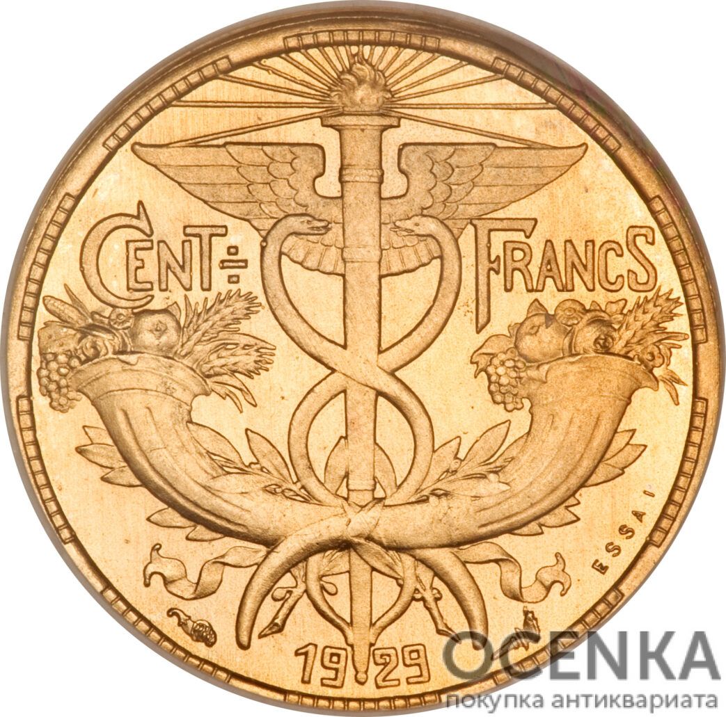 По своему оформлению золотая монета номиналом 100 франков делится на несколько типов: