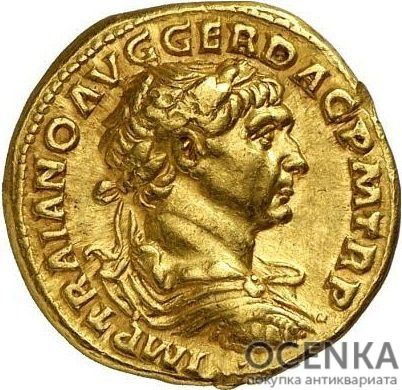 Монета из золота, выпущенная в Древнем Риме в эпоху правления императора Траяна, заинтересует поклонников старины и людей, изучающих историю. Отличается высоким качеством чеканки. Ее часто ищут по запросу «куплю антиквариат». Траян прославился обширными завоеваниями. Именно во время его правления империя достигла максимальных размеров, а казна получила больше золота.