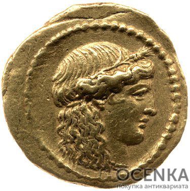 Экземпляры 42 года до н. э. встречаются нечасто, поэтому являются достаточно ценными. Узнать стоимость имеющегося у вас ауреуса можно путем его оценки онлайн по фото. Наши менеджеры назначат справедливую цену в зависимости от состояния экземпляра и могут его купить.