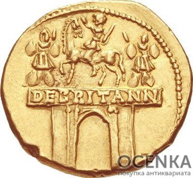 Золотая монета ауреус, Тиберий Клавдий Друз, имела хождение в честь римского политического деятеля, совмещавшего статус Великого понтифика, консула, цензора и, наконец, императора и Отца Отечества. Это ценный экземпляр, и его с удовольствием купили бы коллекционеры, увлеченные нумизматикой. Стоимость экспоната пребывает в широком диапазоне, зависит не только от подлинности, но и от такого показателя, как степень изношенности. Если вы хотите продать эту золотую монету, обращайтесь к нам. Для установления стоимости нашими экспертами будет проведена оценка онлайн по фото.